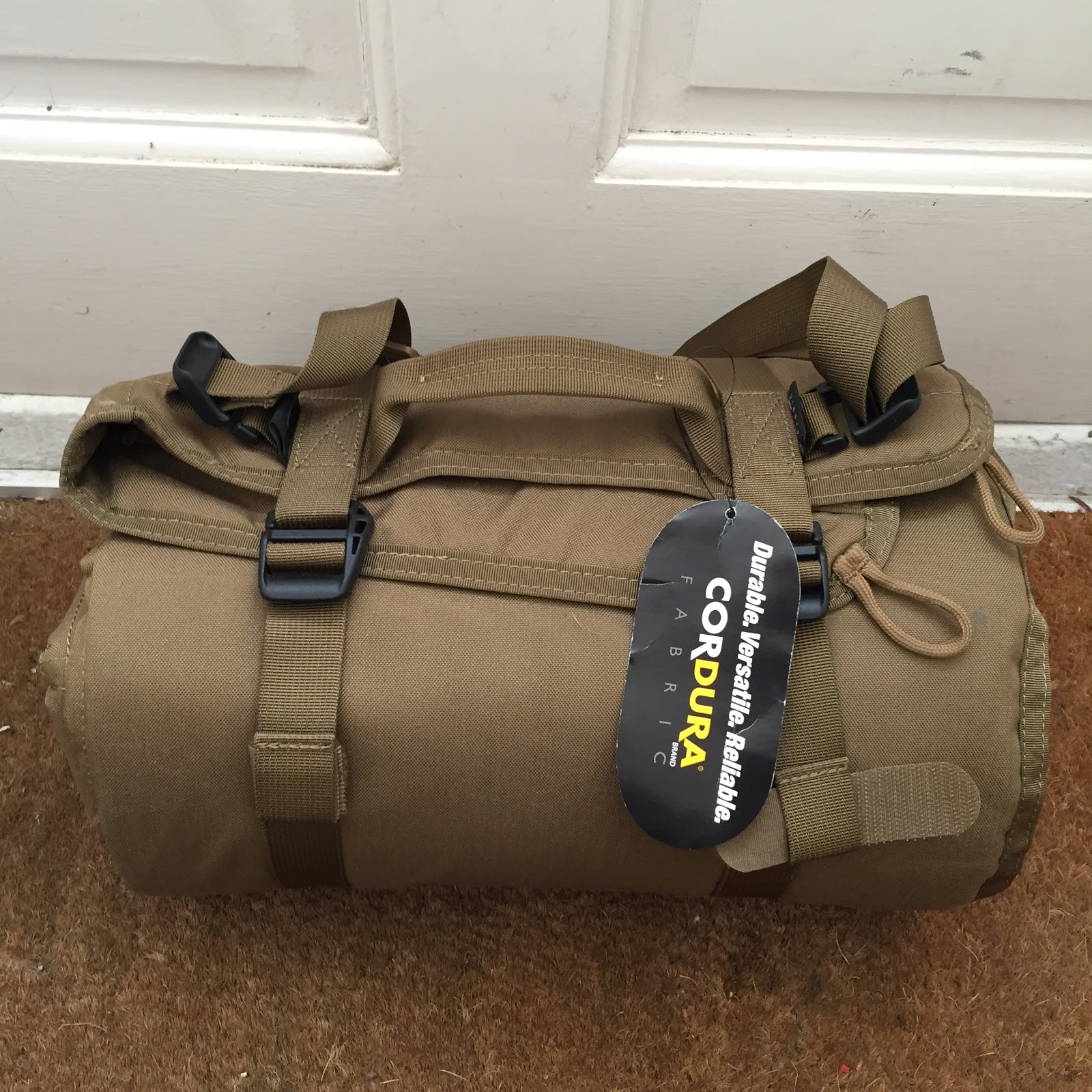 The mat's got grippy sections for your knees and elbows and a moveable velcro backed grippy bit for the hand that supports the rifle's butt.